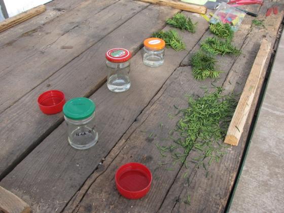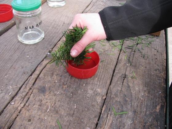 Do celów badawczych proces ukorzeniania prowadzony jest również na różnych wariantach substratów złożonych z torfu, trocin i perlitu oraz porównanie procesu ukorzeniania się osobników młodych i starych.